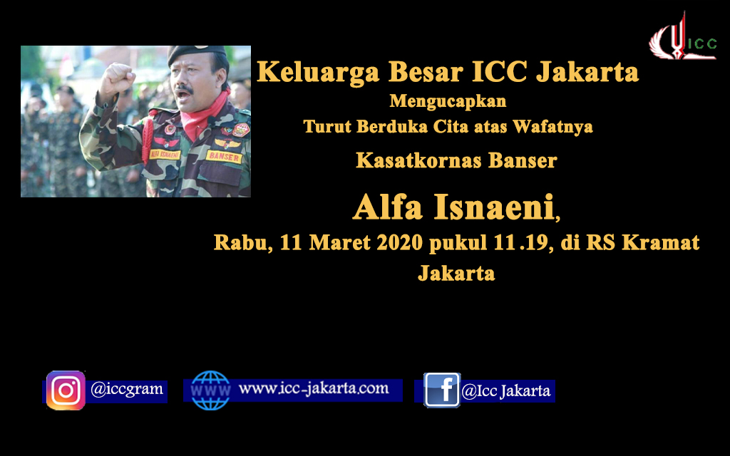 Ucapan Belasungkawa Atas Wafatnya Bapak Alfa Isnaeni Ucapan Belasungkawa Atas Wafatnya Bapak Alfa Isnaeni adminicc Maret 11, 2020 Keluarga Besar ICC Jakarta Mengucapkan Turut Berduka Cita atas Wafatnya Kasatkornas Banser Bapak Alfa Isnaeni, Rabu, 11...Read More